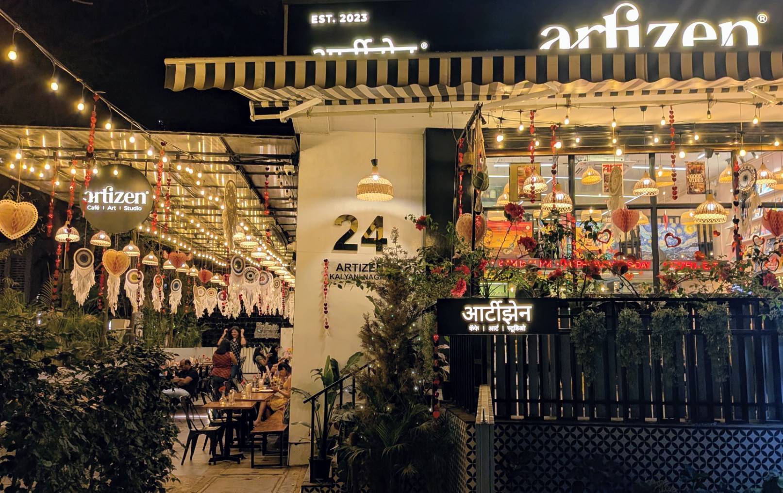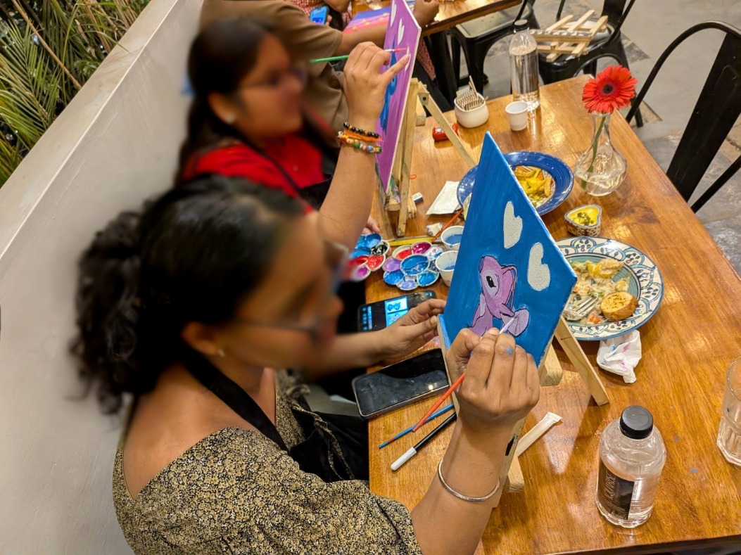 食べ足りないので、もう一軒行きつけのステーキ・バーベキューの店に行く途中で、見慣れないカフェを見つけて観察すると、Artizenという名前で、まだオープンして3ヶ月という洒落たカフェである。覗いてみると若いカップルや女性グループが多い。よく見ると何と、女性客2人がテーブルで小さなイーゼルに乗ったキャンバスに絵を描いているではないか!! 余りにもビックリしたので写真を撮らせてもらった。どうやらこのカフェでは絵を描くことができるようだ。こんなサービスがあるとは、思いもよらなかったが、どこでも流行りそうな気がしたのである。